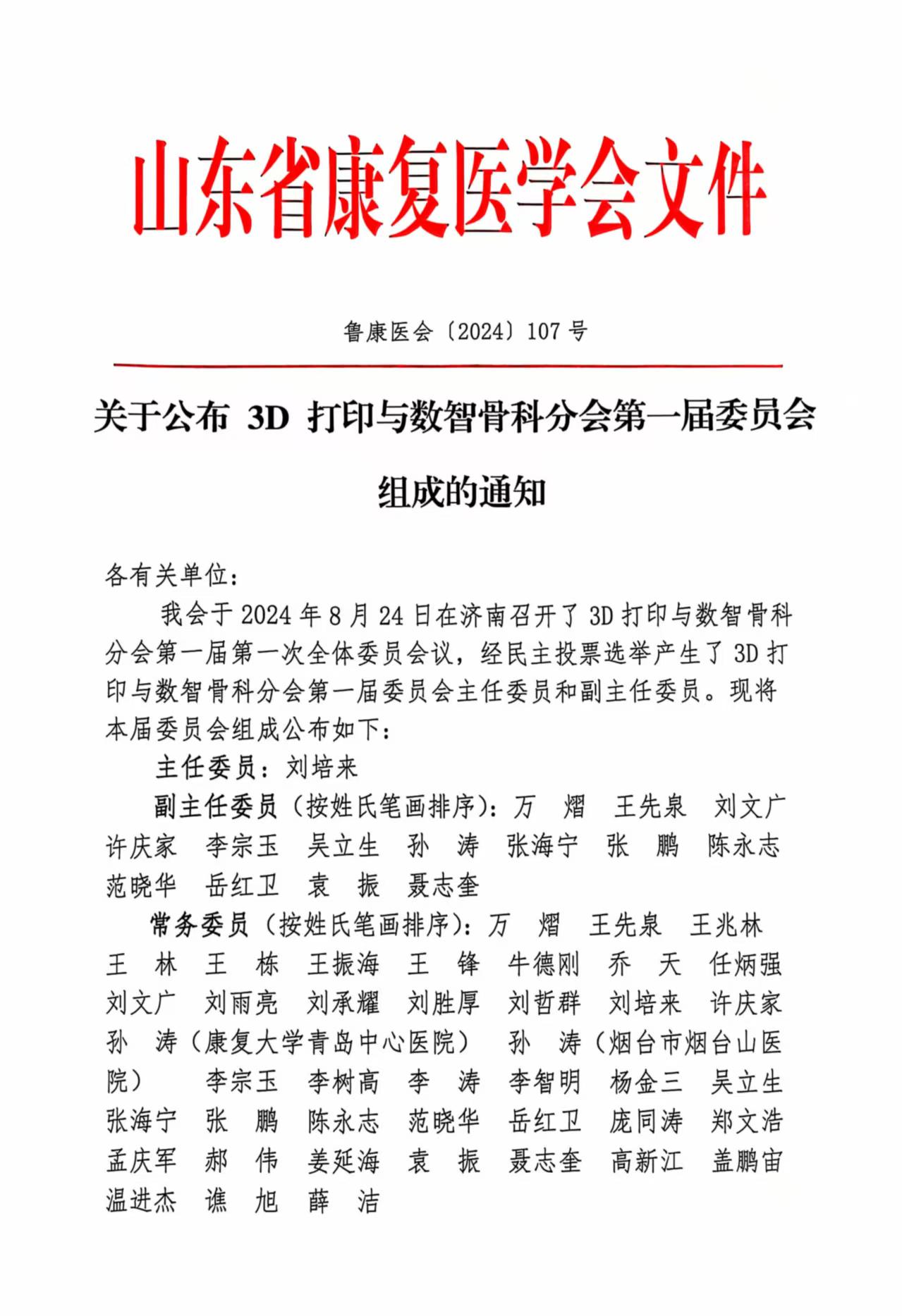 山东省康复医学会关于公布3D打印与数智骨科分会第一届委员会组成的通知.pdf