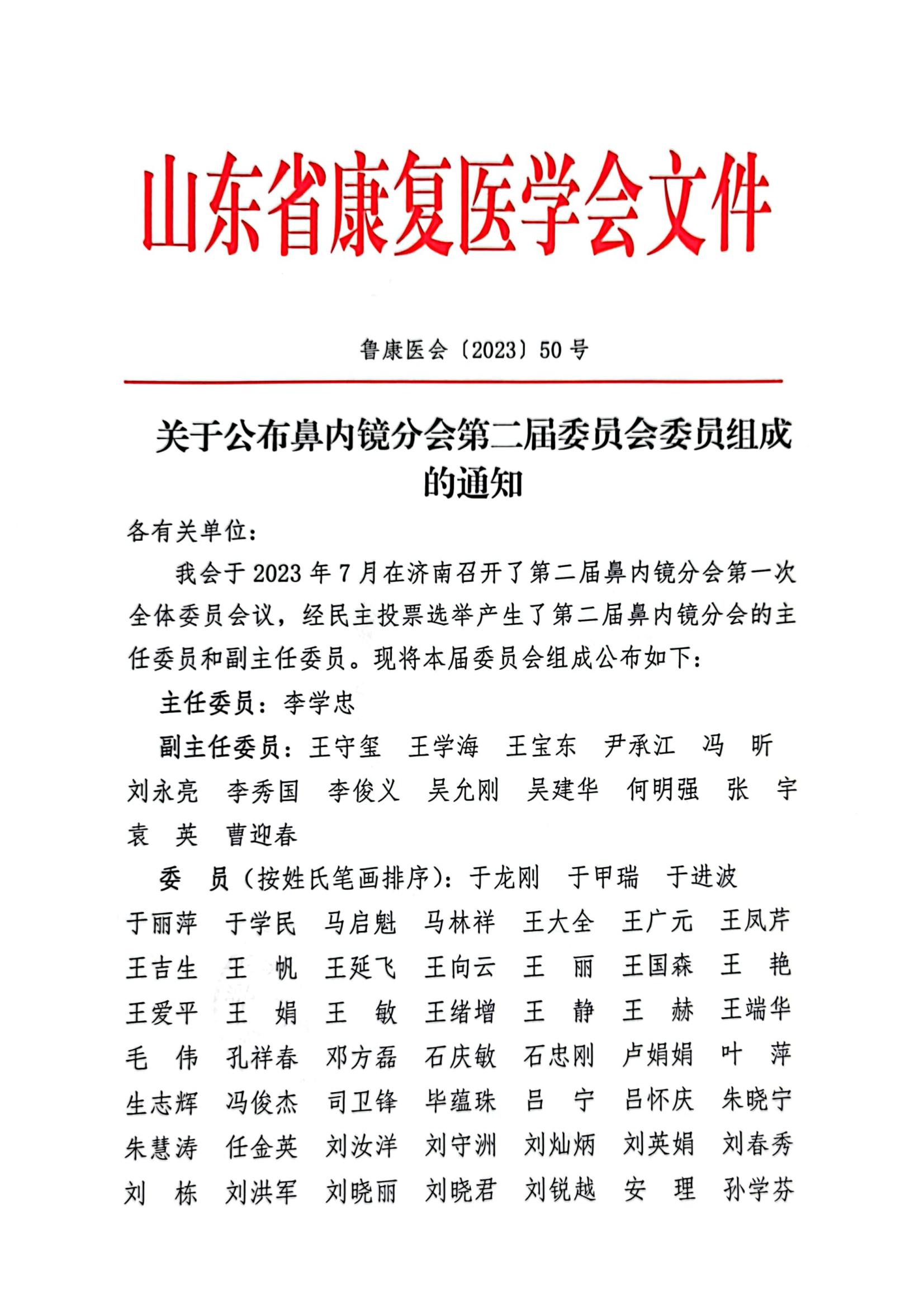 关于公布鼻内镜分会第二届委员会委员组成的通知