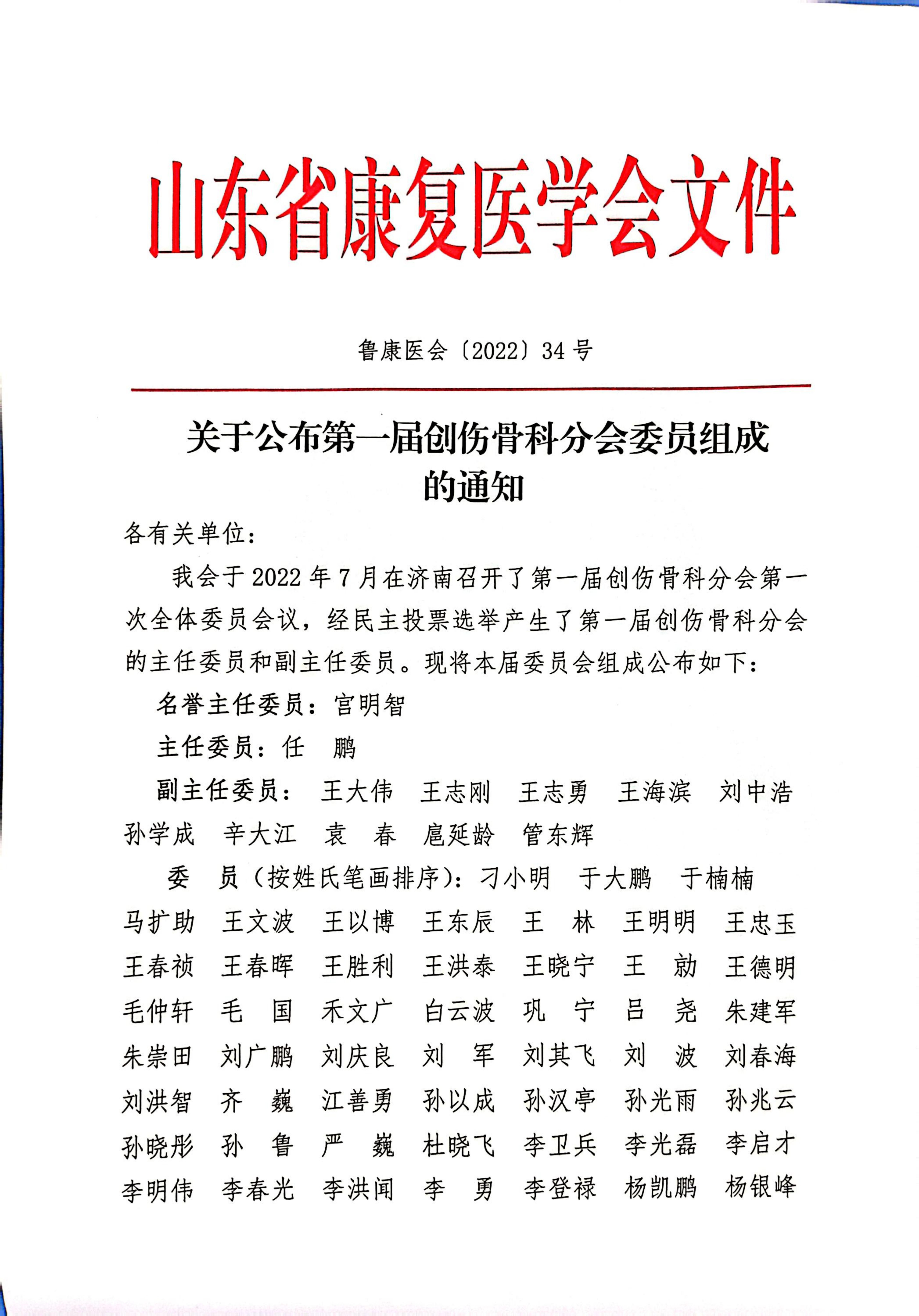 山东省康复医学会关于公布第一届创伤骨科分会委员组成的通知.pdf