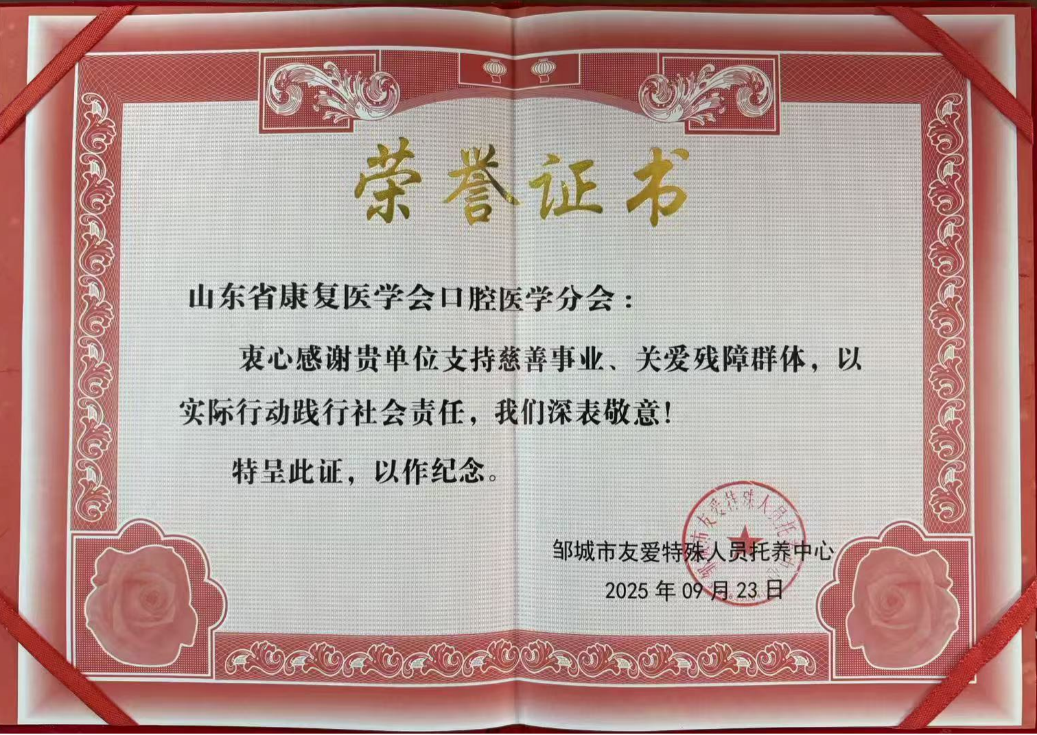 此次活动将慈善公益与红色党建相结合,既为残障群体送去关怀,又进一步筑牢分会委员的政治信仰。未来,山东省康复医学会口腔医学分会将持续把活动中汲取的力量转化为工作实效,提升口腔医疗服务质量及专业水平,为推进健康山东建设、助力社会和谐发展贡献更多力量。