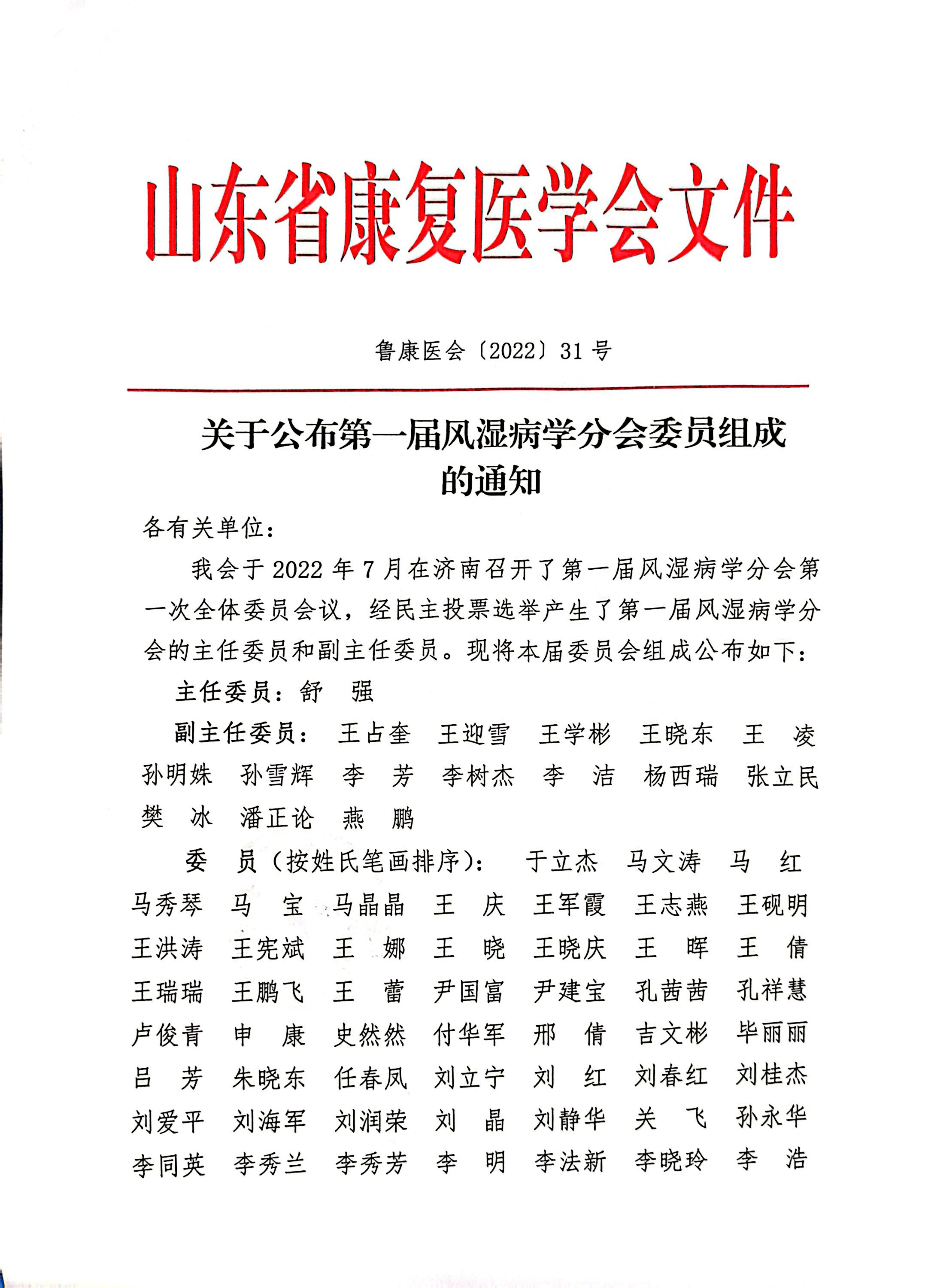 山东省康复医学会关于公布第一届风湿病学分会委员组成的通知(1).pdf