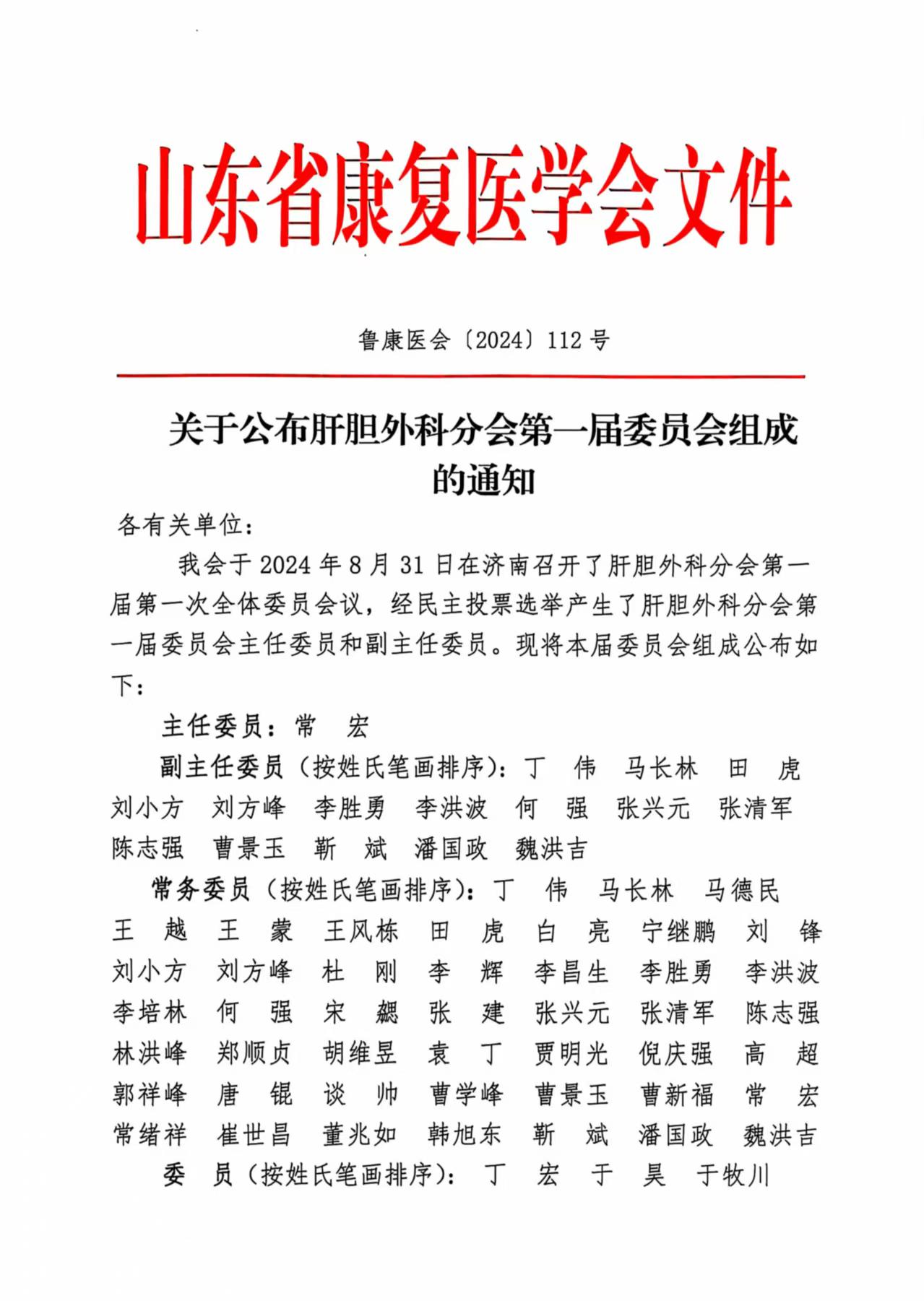山东省康复医学会关于公布肝胆外科分会第一届委员会组成的通知.pdf