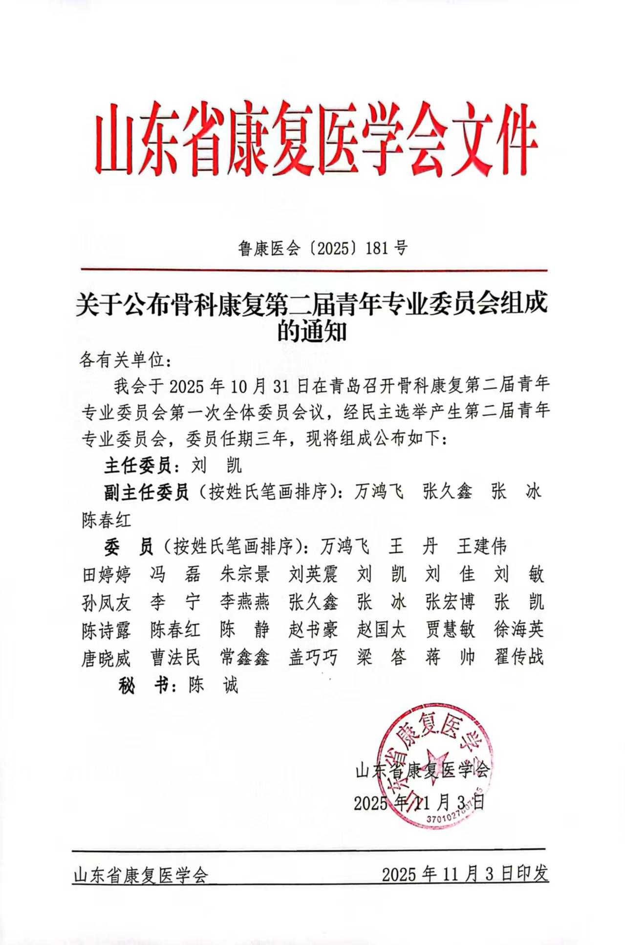 山东省康复医学会关于公布骨科康复第二届青年专业委员会组成的通知.pdf