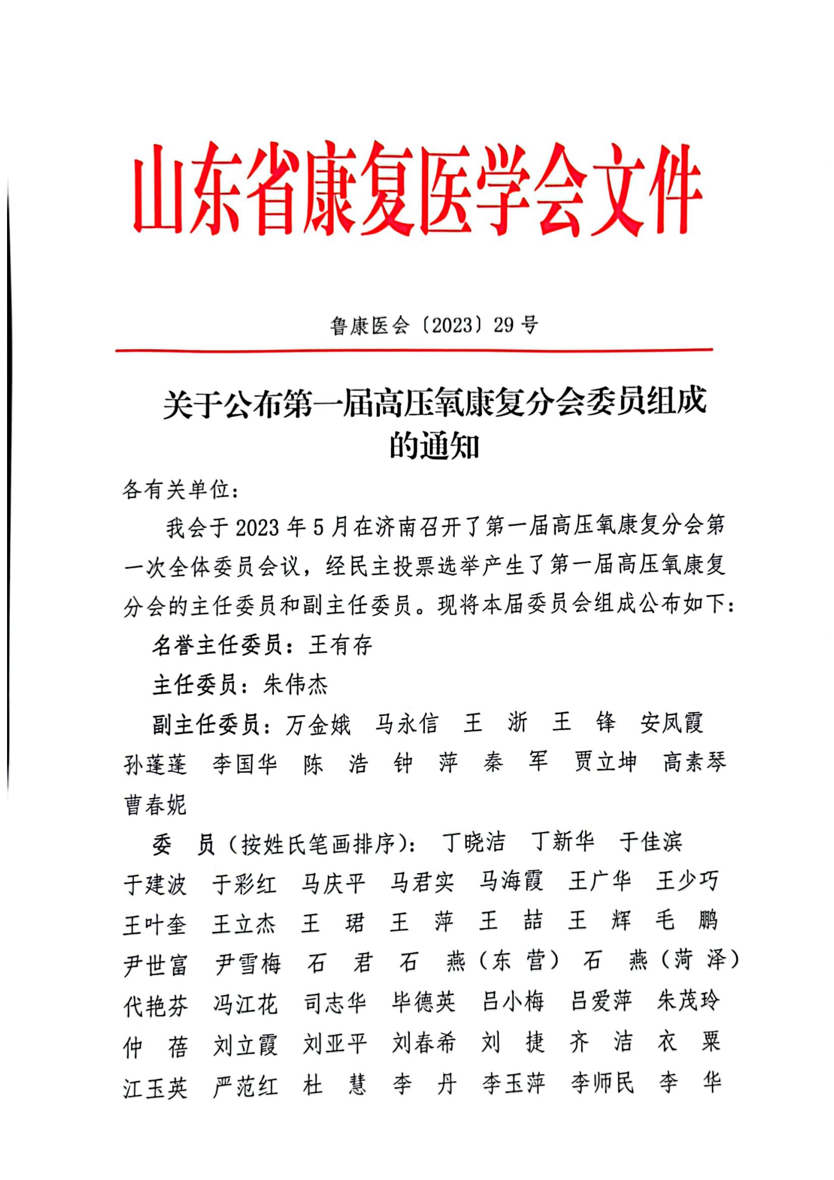 关于公布第一届高压氧康复分会委员组成的通知(1).pdf