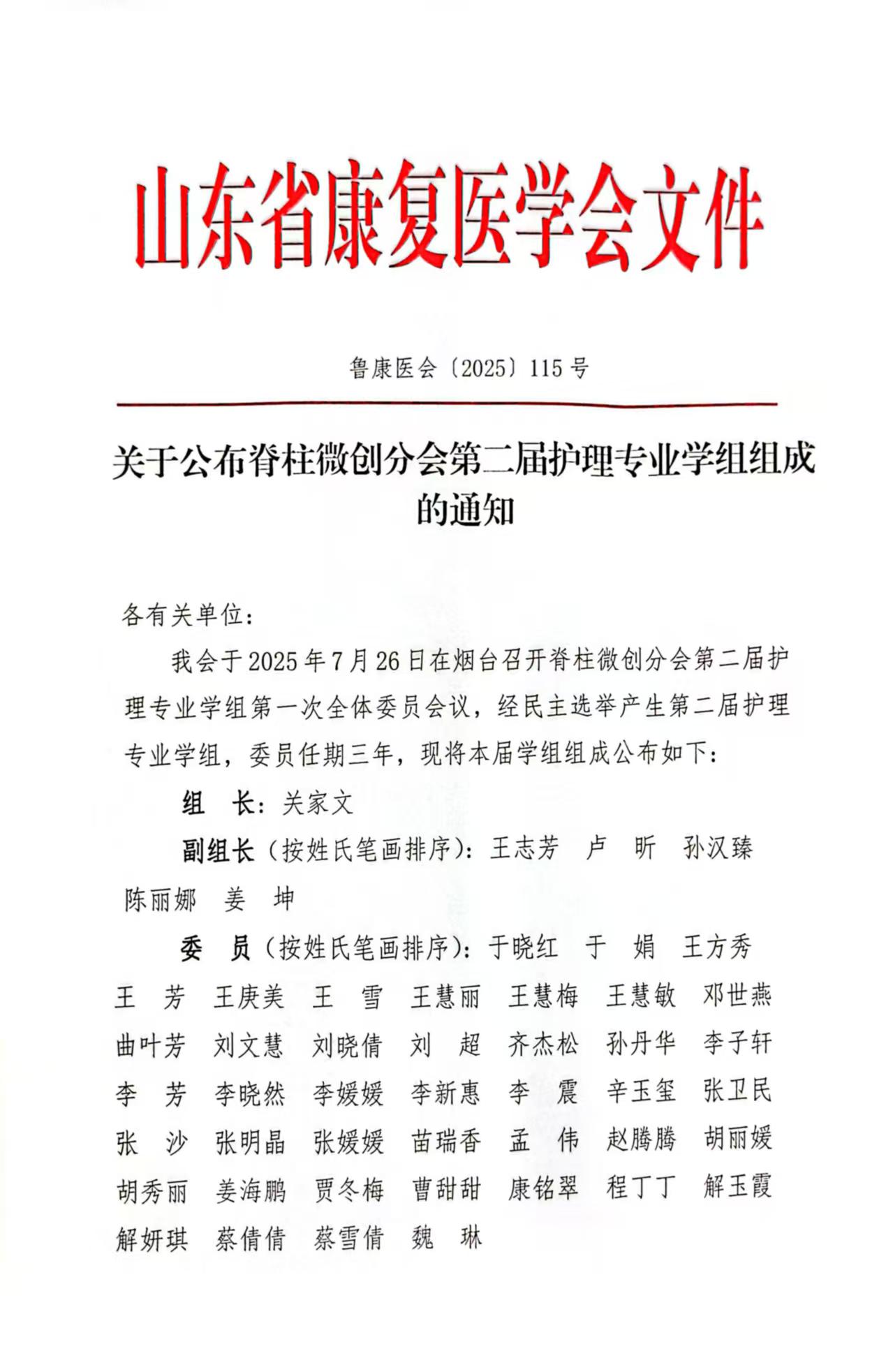 山东省康复医学会关于公布脊柱微创分会第二届护理专业学组组成的通知.pdf