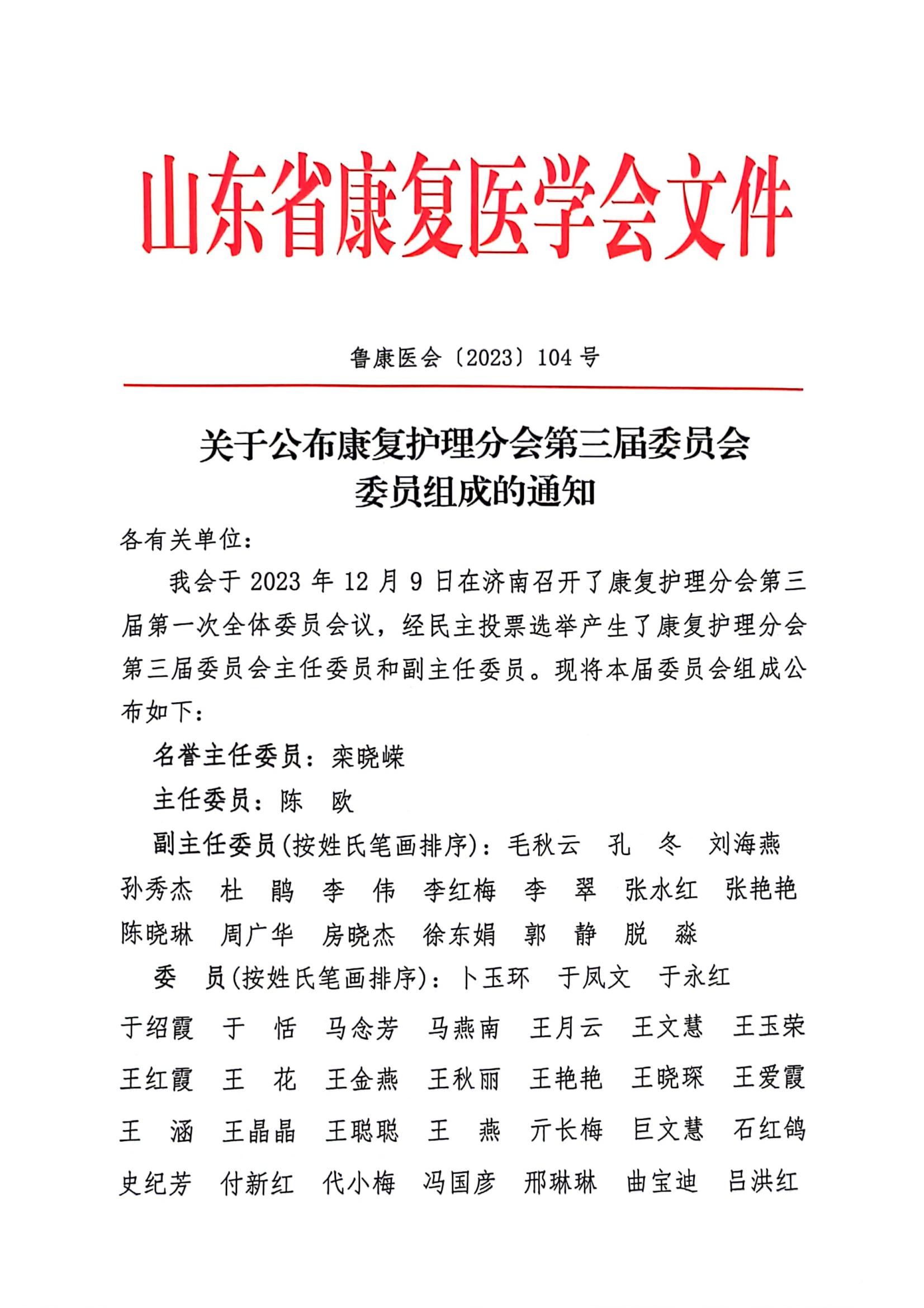 关于公布康复护理分会第三届委员会委员组成的通知(1).pdf