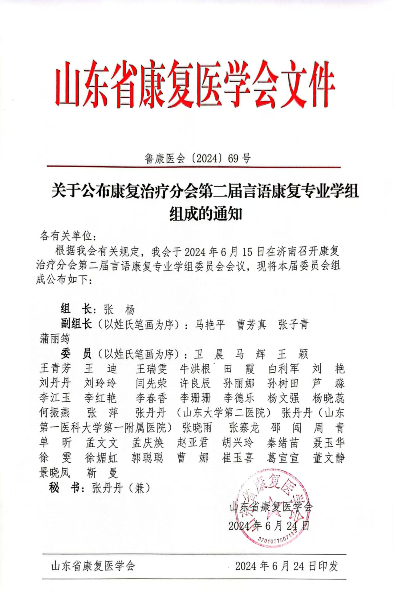 山东省康复医学会关于公布康复治疗分会第二届言语康复专业学组组成的通知.pdf