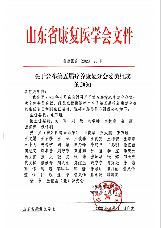 关于公布第五届疗养康复分会委员组成的通知.pdf
