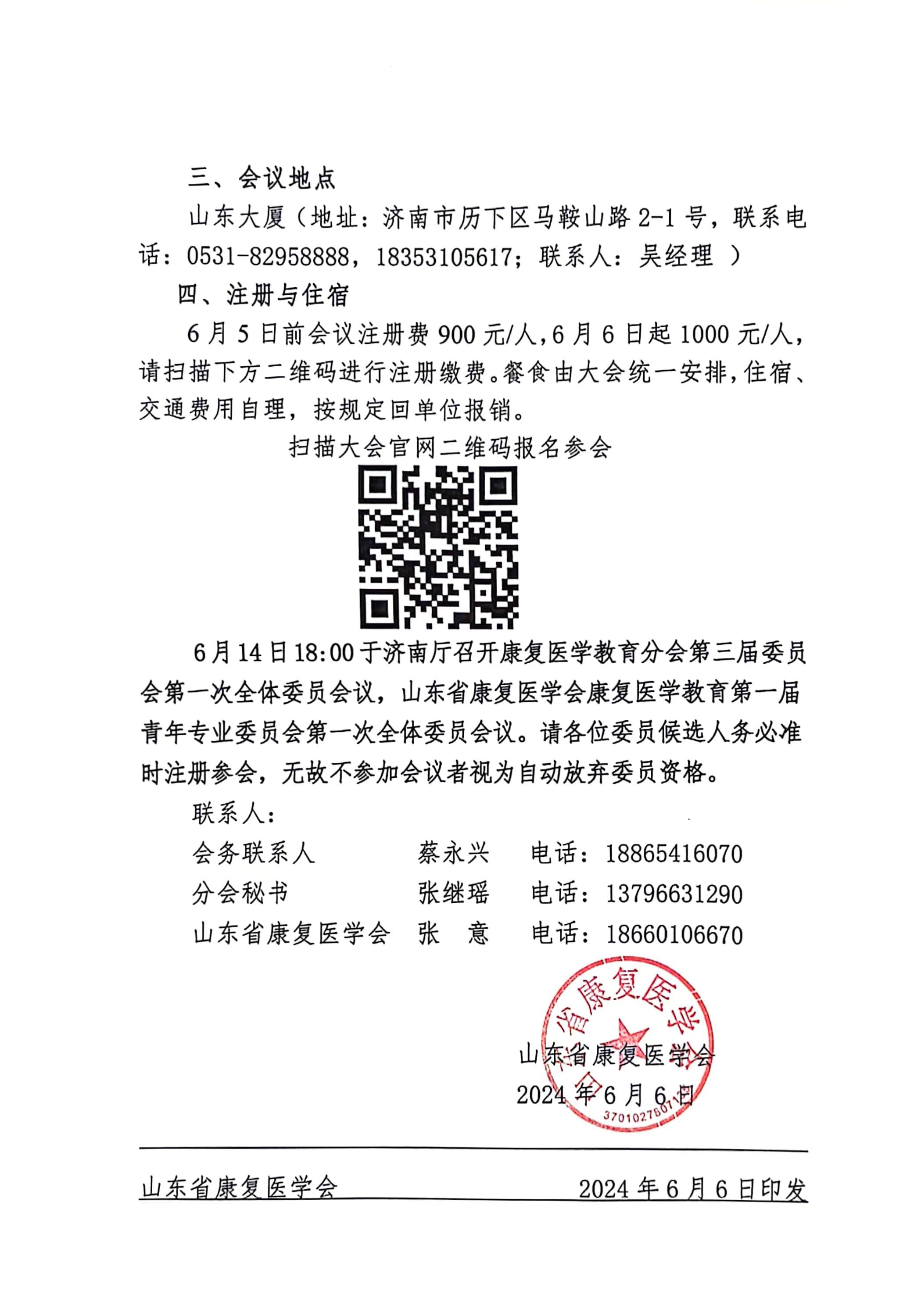 鲁康医会〔2024〕59号 关于公布山东省康复医学会第四届理事会组成的通知
