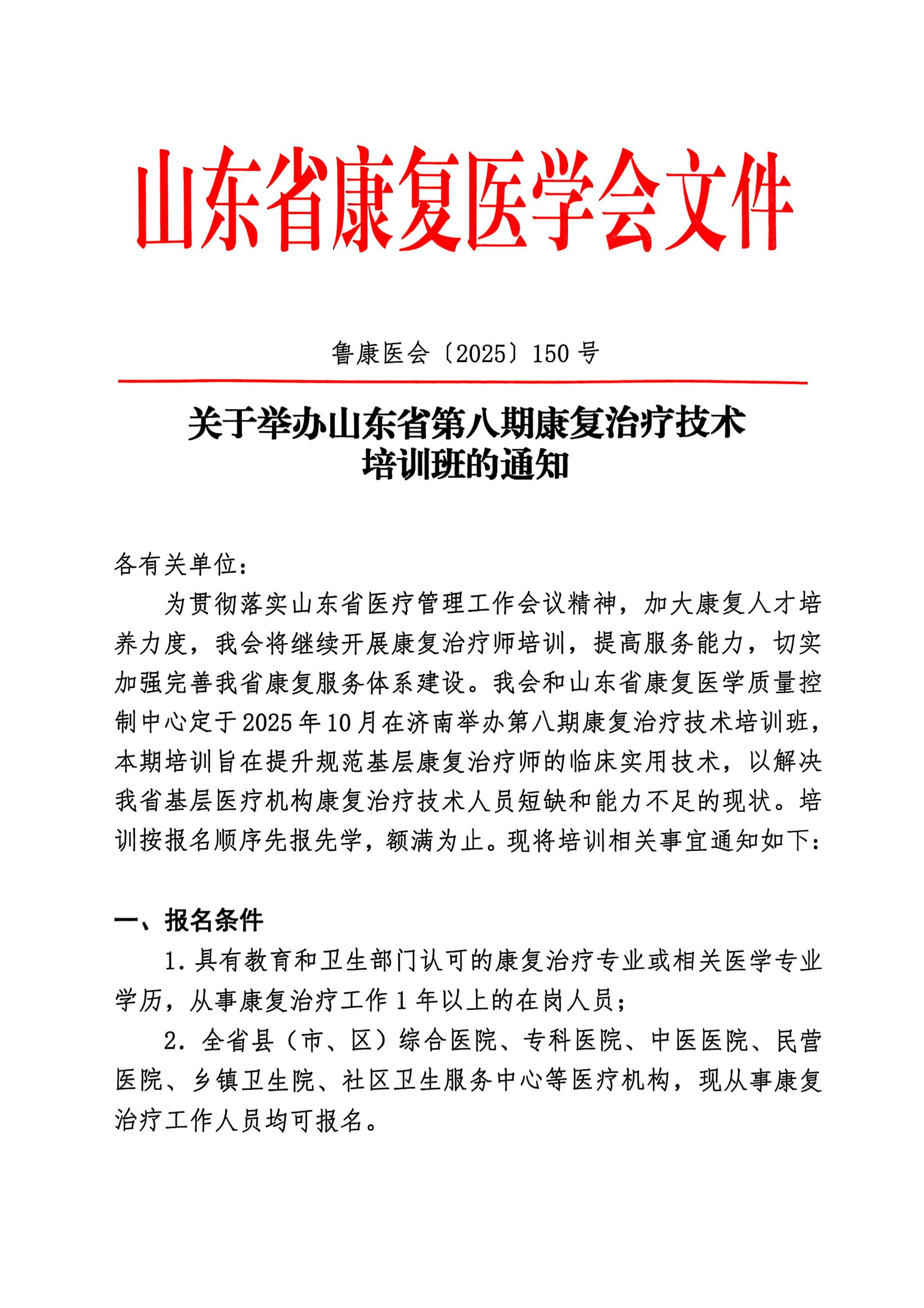 关于举办山东省第八期康复治疗技术培训班的通知(3).pdf