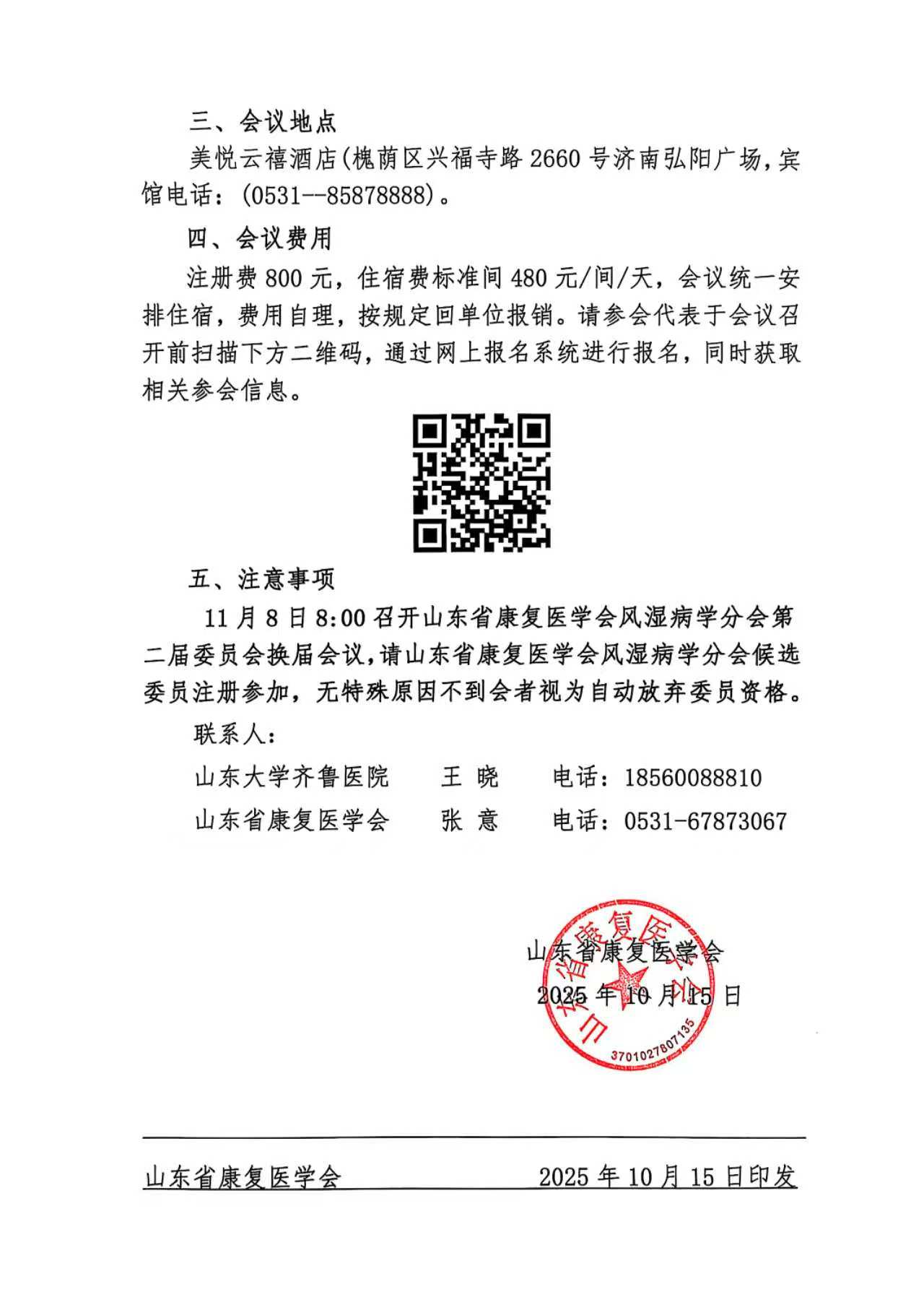 关于召开山东省康复医学会风湿病学分会第二届委员会换届会议暨第三次学术会议的通知
