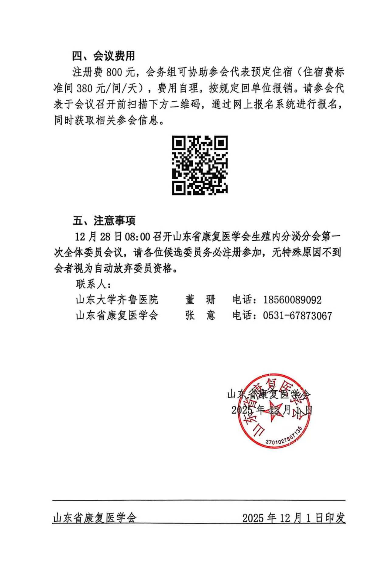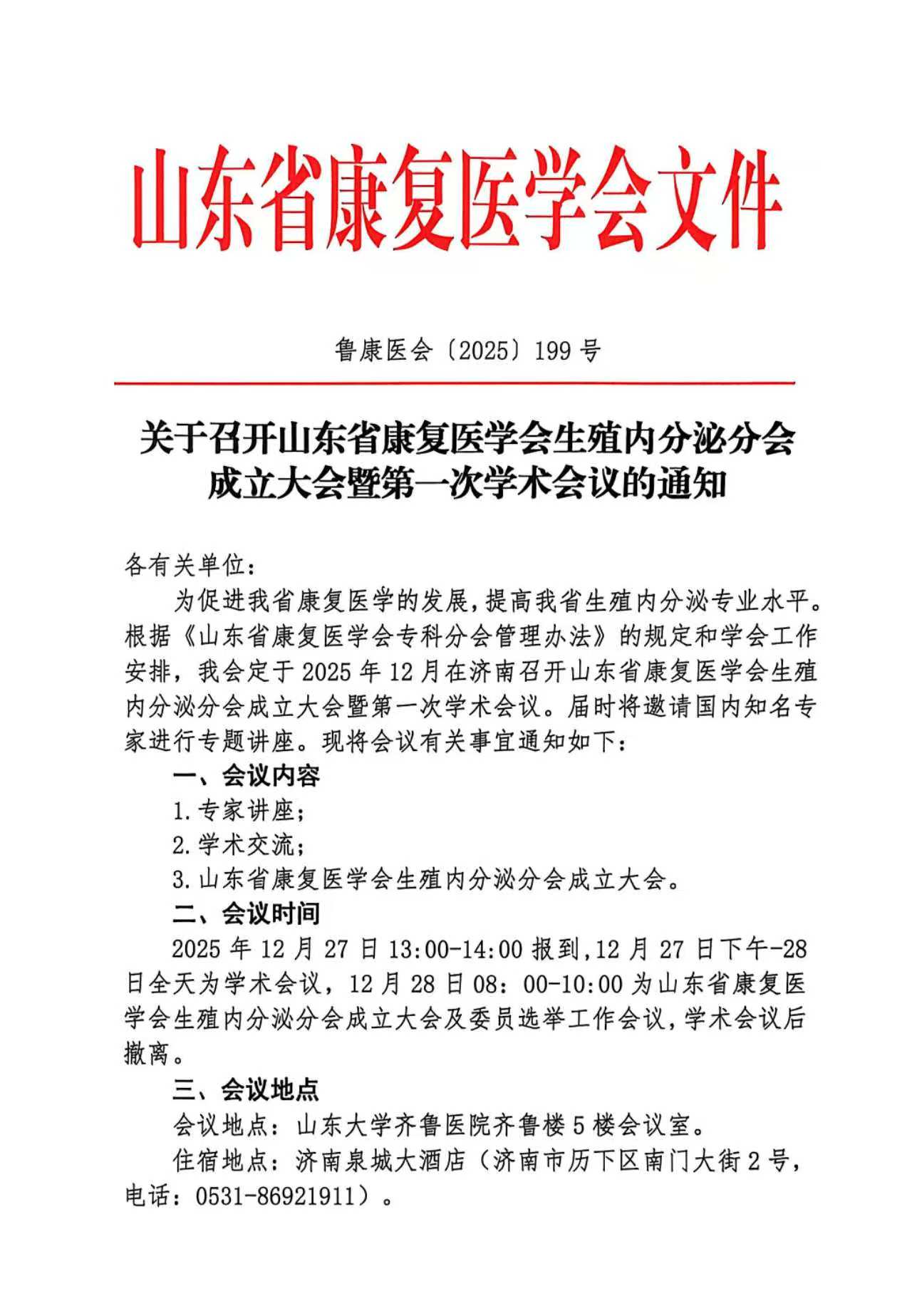 关于召开山东省康复医学会生殖内分泌分会成立大会暨第一次学术会议的通知