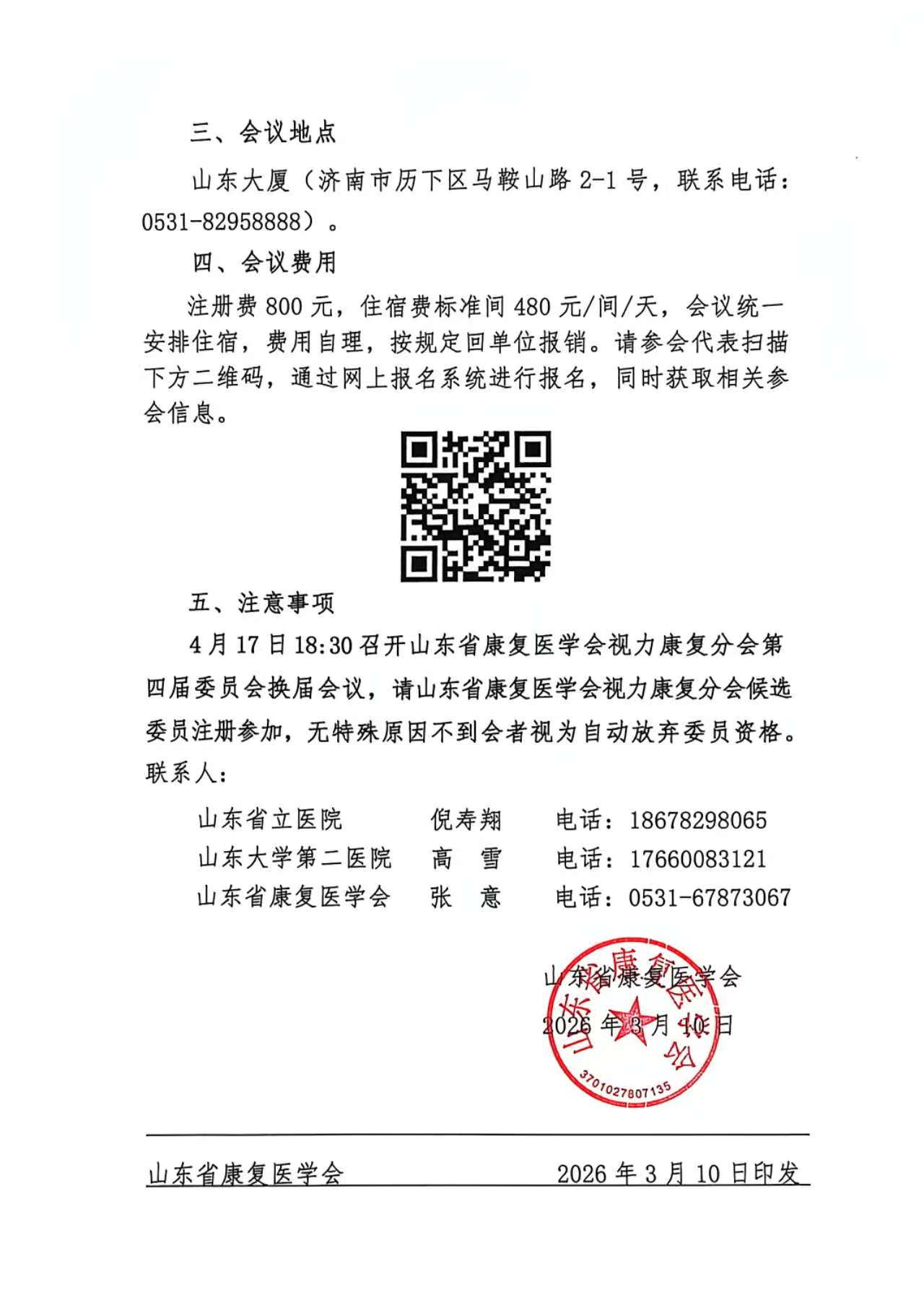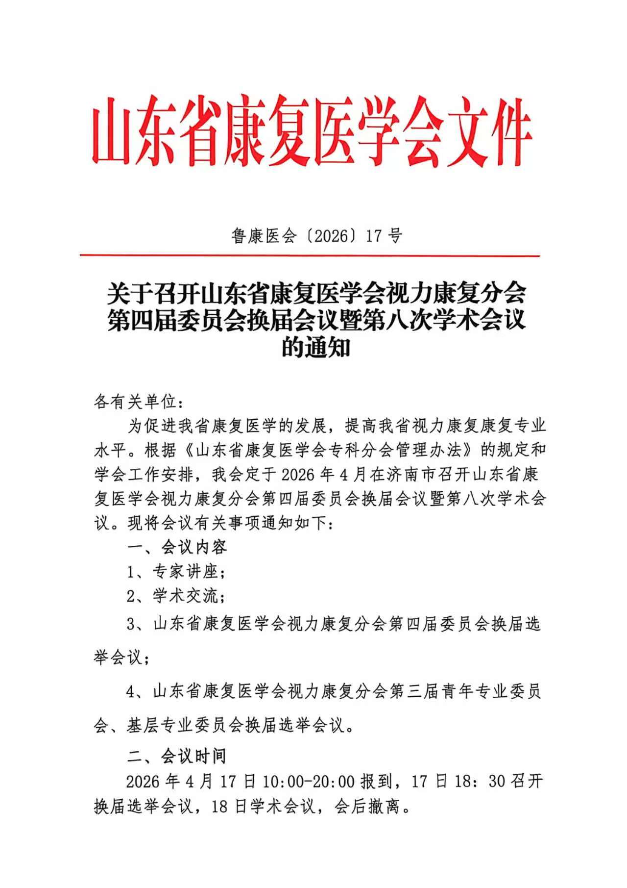 关于召开山东省康复医学会视力康复分会第四届委员会换届会议暨第八次学术会议的通知