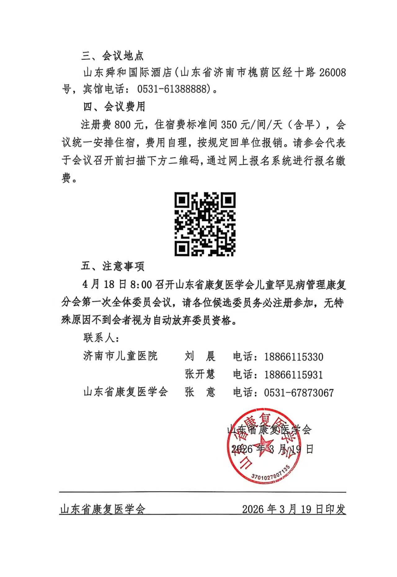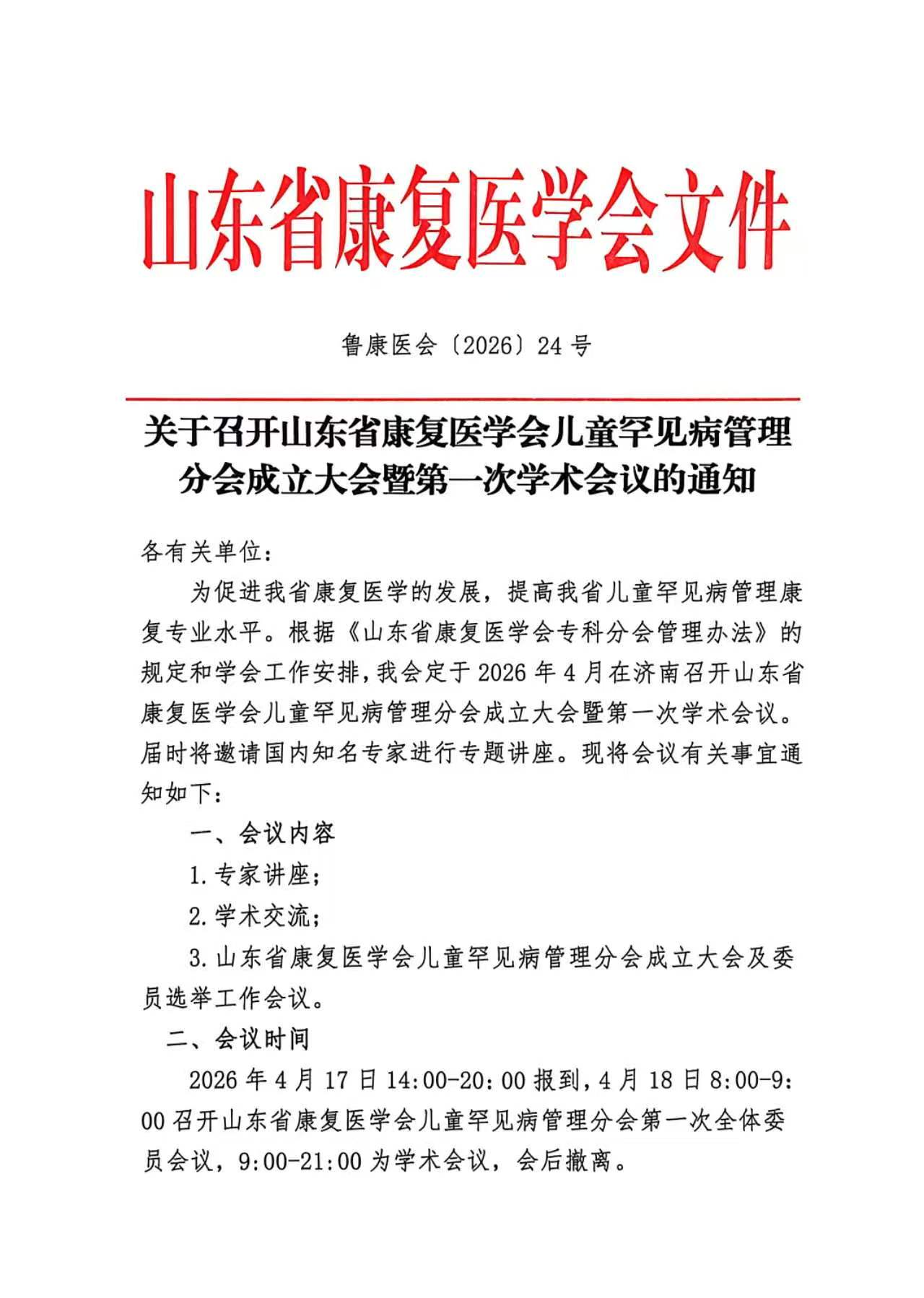 关于召开山东省康复医学会儿童罕见病管理分会成立大会暨第一次学术会议的通知