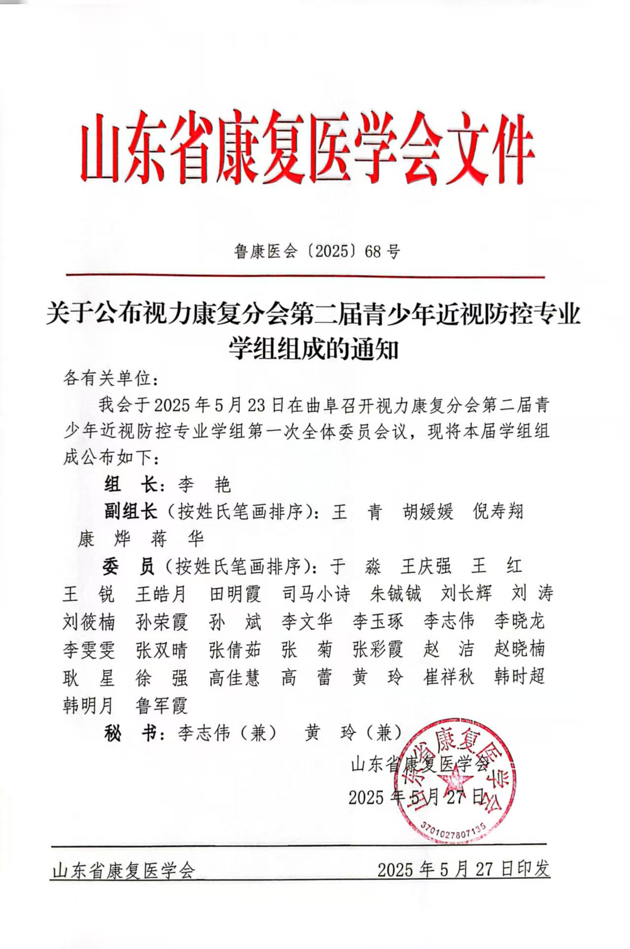 68-山东省康复医学会关于公布视力康复分会第二届青少年近视防控专业学组组成的通知.pdf