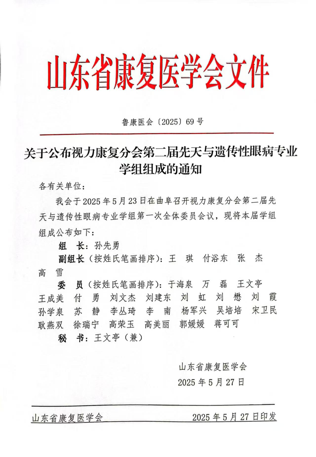 69-山东省康复医学会关于公布视力康复分会第二届先天与遗传性眼病专业学组组成的通知.pdf