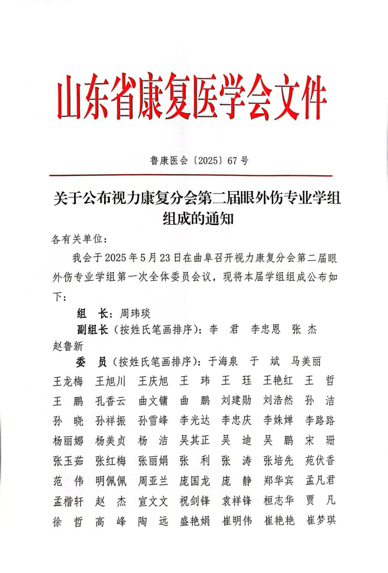 67-山东省康复医学会关于公布视力康复分会第二届眼外伤专业学组组成的通知.pdf