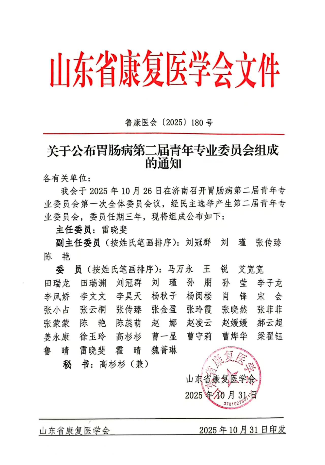 关于公布胃肠病第二届青年专业委员会组成的通知.pdf