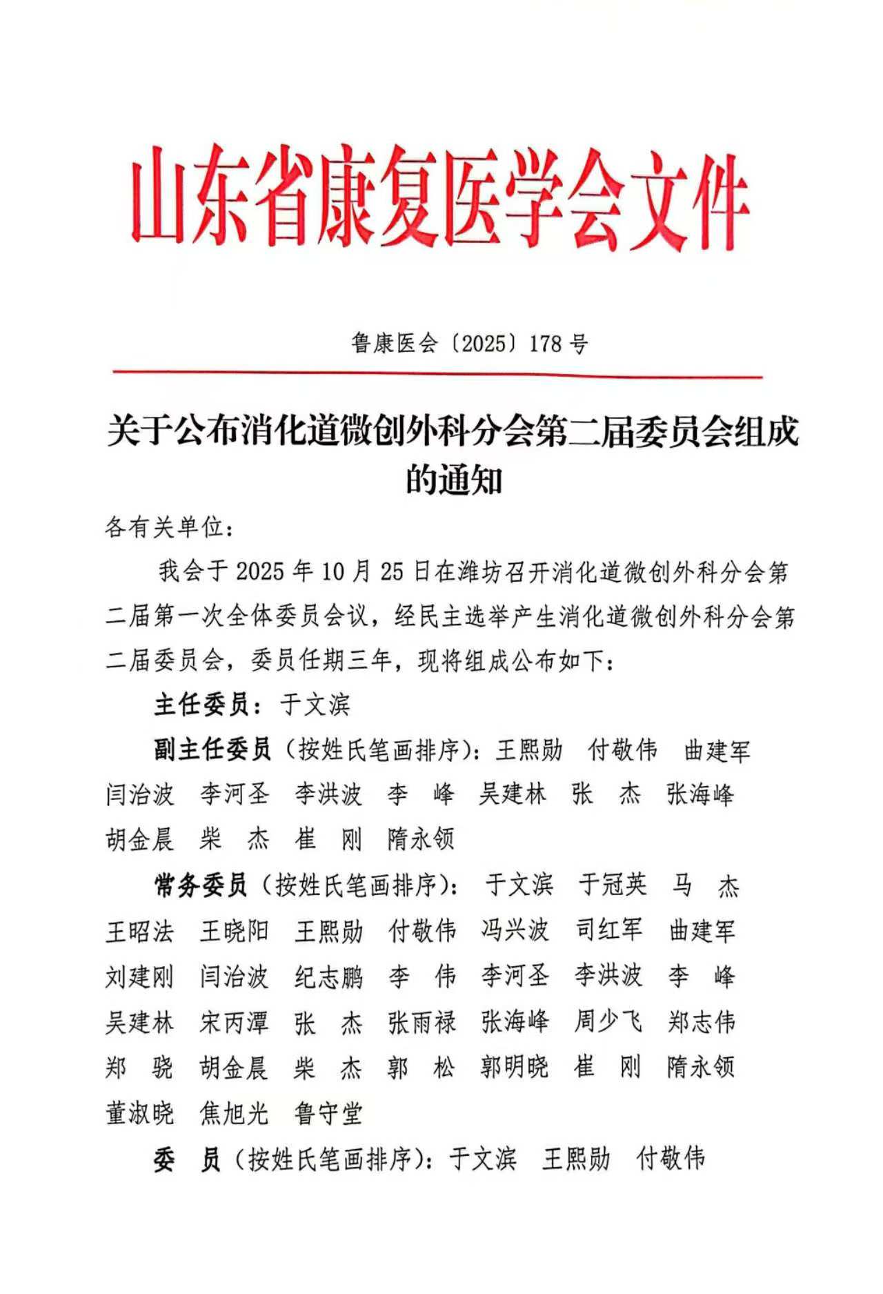 山东省康复医学会关于公布消化道微创外科分会第二届委员会组成的通知(1).pdf