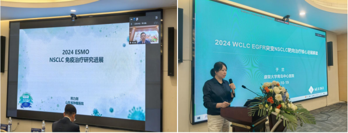 肿瘤康复分会场中山东第一医科大学附属肿瘤医院邢力刚教授、上海武警总队医院潘绵顺教授、康复大学青岛中心医院于兰教授、青岛大学附属医院肖文静教授、青岛大学附属医院刘自民教授、中华肿瘤学杂志编辑部主任代小秋教授分别就“2024 ESMO NSCLC免疫治疗进展”“脑转移瘤放射外科之管见”“2024 WCLC EGFR突变NSCLC靶向治疗核心进展解读”“抗EER2 ADC药物最新进展”“2024ASC0 Gc新进展”及“统计学方法在论文写作中的巧用”等内容进行了精彩讲解。