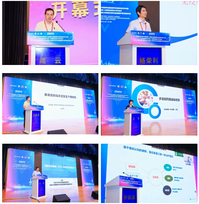 学术环节设1个主会场,5个分会场。邀请重症领域的知名专家围绕当前重症医学及血液净化发展热点和前沿技术进行了深入的交流和探讨。中国医学科学院北京协和医院隆云教授分享了“智能机械通气报告的研发与应用”;大连理工大学附属中心医院杨荣利教授讲述了“免疫重症:首选药物还是血液净化?”;山东省公共卫生临床中心王春亭教授以“脓毒症的临床亚型及干预时机”为题带来分享;天津市第一中心医院王莹教授讲解了“多重耐药菌感染管理”;山东大学齐鲁医院王昊教授带来“侵袭性真菌病的预防和早期诊疗”;山东大学齐鲁医院(青岛)孙运波教授带来“镇静镇痛策略——三维一体化管理”等相关授课内容。各会场学术交流精彩纷呈,来自全省重症医学的专家学者对科研成果、临床经验、典型案例进行交流探讨。