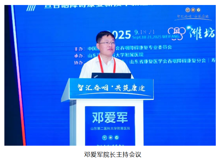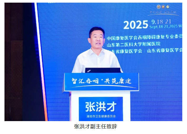 中国康复医学会吞咽障碍康复专业委员会主任委员、西安交通大学第二附属医院张巧俊教授,亚洲吞咽障碍学会副主席、中国康复医学会副会长、中山大学附属第三医院窦祖林教授,欧洲吞咽障碍协会主席、德国明斯特大学奥斯纳布吕克医院Prof.Dziewas教授,山东省康复医学会常务副会长、山东大学齐鲁医院岳寿伟教授,中国康复医学会吞咽障碍康复专委会副主任委员、中山大学附属第三医院温红梅教授,山东第二医科大学副校长梁淑娟,潍坊市卫健委副主任张洪才出席会议,会议由山东第二医科大学附属医院院长邓爱军主持。