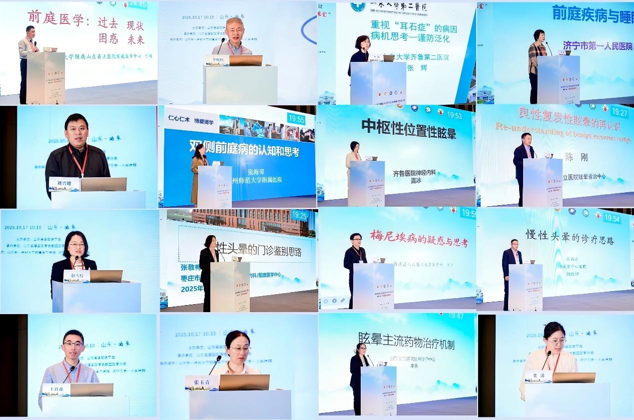 会议聚焦前庭医学(眩晕)领域发展,特邀国内省内该领域知名专家齐聚一堂,围绕前庭疾病诊疗热点议题与前沿技术展开深度交流探讨,为临床实践与学科发展注入新思路。山东第一医科大学附属省立医院于刚教授以“前庭医学的现状、困惑与使命”为题,系统梳理了学科发展脉络,剖析当前面临的挑战与未来发展方向;山东大学齐鲁医院李明欣教授聚焦“前庭性偏头痛:诊断标准的宽严思考”,深入探讨诊断标准的临床适配性问题;山东大学齐鲁第二医院张辉教授强调“重视‘耳石症’的病因思考防止泛化”,为规范该病诊疗提供关键参考;济宁市第一人民医院赵莉教授分享“前庭疾病与睡眠障碍”的关联研究,拓展了疾病综合诊疗的视角;解放军总医院刘兴健教授阐述“特色前庭功能检查体系构建与辅助临床诊疗的重要性”,凸显前庭检查技术对精准诊疗的支撑作用;杭州师范大学附属医院张海琴教授围绕“双侧前庭病的认知与思考”,深化了对该疾病的临床认知;山东大学齐鲁医院温冰教授详解“中枢性位置性眩晕”的诊疗要点,为临床鉴别与治疗提供指导;山东第一医科大学附属省立医院陈刚教授带来“良性复发性眩晕的再认识”,结合最新研究成果更新临床认知;山东第一医科大学附属省立医院赵雪柠教授剖析“前庭神经炎的知与惑”,解答临床常见疑问;枣庄市市中区人民医院张敬梅教授分享“急性眩晕的门诊鉴别思路”,提升门诊诊疗效率;沂南县人民医院王阳教授探讨“梅尼埃病的疑惑与思考”,为该病的规范化诊疗提供借鉴;聊城市中心医院张西亭教授梳理“慢性头晕的诊疗思路”,助力临床精准干预;聊城市中心医院王祥森教授阐释“前庭平衡康复的基层工作要点”,推动康复技术在基层落地;济南市槐荫人民医院张玉青教授介绍“慢性晕症患者住院期的管理模式”,优化患者诊疗体验;山东第一医科大学附属省立医院李赟教授讲解 “眩晕主流药物治疗机制”,夯实临床用药理论基础;山东第一医科大学附属省立医院张潇教授分享“与头晕相关的听功能检查”,完善眩晕诊疗的辅助检查体系。枣庄市市中区人民医院张益、济宁市第一人民医院石晶、临沂市第三人民医院刘菲、东营市人民医院刘瑞杰、阳光融合医院李文分别带来了精彩的病例分享。
