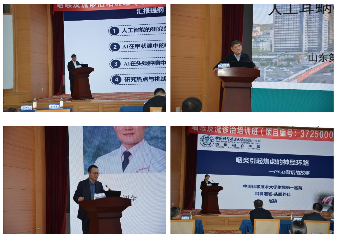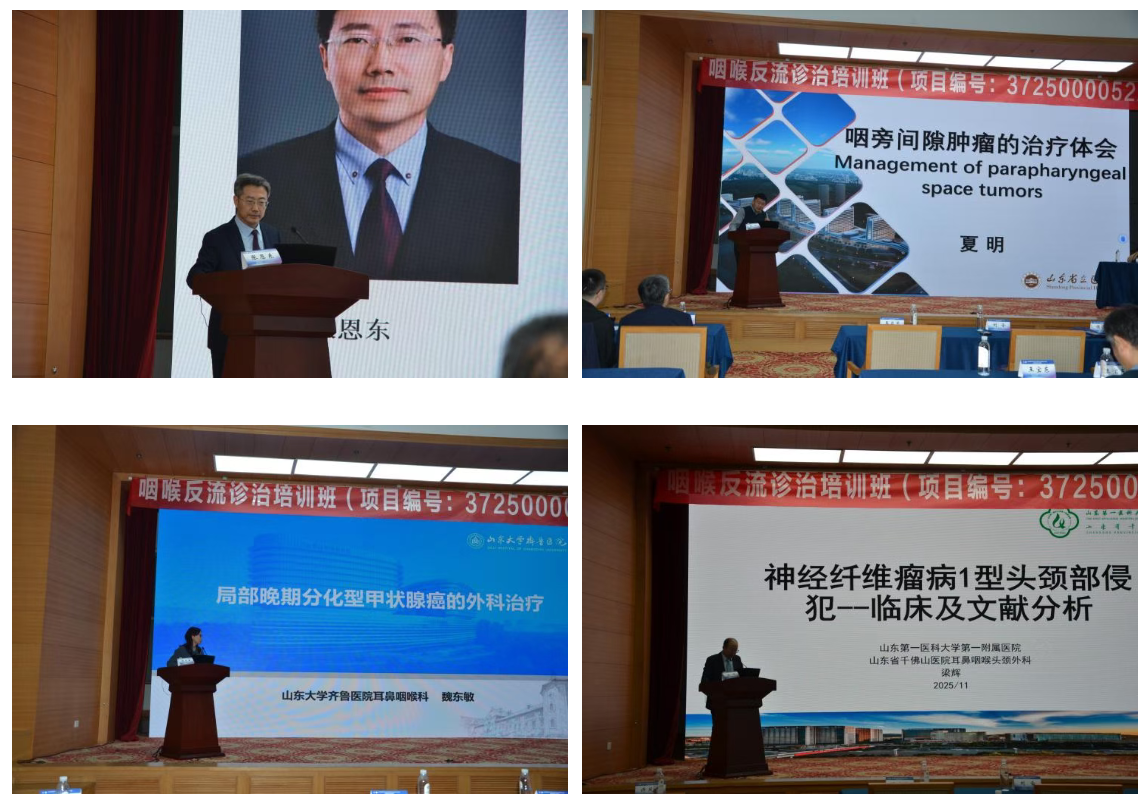 会议邀请咽喉内镜康复领域的知名专家围绕咽喉内镜相关疾病、手术、康复等热点和前沿技术进行了深入的交流和探讨。烟台毓璜顶医院宋西成教授讲解了“人工智能在甲状腺癌精准诊疗中的应用和进展”;复旦大学附属眼耳鼻喉科医院刘全教授讲解了“内镜颅底外科技术的探索和创新”;中国科学技术大学附属第一医院赵婉教授讲述了“咽炎引起焦虑的神经环路”; 山东大学齐鲁医院潘新良教授分享了“头颈手术入路的选择技巧”;威海市立第二医院张恩东教授讲解了“甲状旁腺及相关区域肿瘤腔镜手术入路的选择策略”;山东第一医科大学附属省立医院夏明教授讲解了“咽旁间隙肿瘤的治疗体会”; 济宁市第一人民医院李秀国教授讲解了“1例合并听神经瘤的咽旁间隙肿瘤诊治分享”。还有其他来自省内外咽喉内镜领域的知名专家进行了精彩授课。