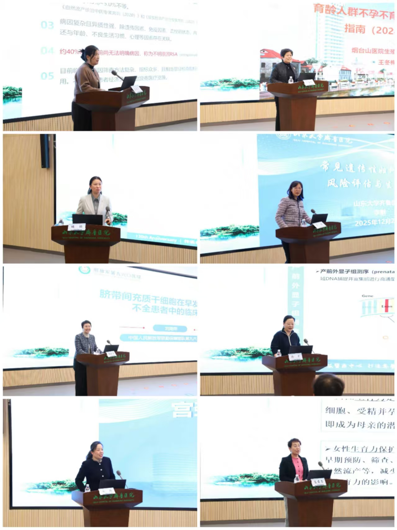 会议邀请生殖内分泌领域的知名专家围绕生殖内分泌的热点和前沿技术进行了深入的交流和探讨。枣庄市妇幼保健院赵淑芹教授分享“不明原因性RSA诊疗规范(2025年)”;烟台市烟台山医院王冬梅教授讲授“育龄人群不孕不育防治临床实践指南(2024)解读”;青岛大学附属医院姚勤教授介绍“卵巢肿瘤的保育治疗”;山东大学齐鲁医院李鹏教授探讨“常见遗传性妇科肿瘤的风险评估和生育策略”;中国人民解放军联勤保障部队第九六O医院刘海萍教授介绍“脐带间充质干细胞在早发性卵巢功能不全患者中的临床研究”;山东大学齐鲁医院孙平教授解读“从WES到三代测序-革新产前诊断的精准医疗”;山东大学齐鲁医院方燕教授分享“宫颈机能不全的临床诊治”;山东第二医科大学附属医院姜爱芳教授讲授“子宫内膜异位症患者生育力保护与保存”;山东第一医科大学附属省立医院王珊教授讲解了“反复种植失败的临床策略”;山东大学解放军总医院第六医学中心的商微教授和武汉大学汪晖教授分别围绕“卵巢储备功能减退新策”“胎源性疾病的发育编程机制及早期防治策略”为主题作主旨报告,深入解析学科前沿动态与核心技术要点。山东大学齐鲁医院宋坤教授分享了“子宫内膜癌患者的保育治疗策略”;山东省妇幼保健院杨慧军、山东大学齐鲁医院周海斌、山东中医药大学附属医院韩乐天、山东大学附属生殖医院倪天祥、山东大学齐鲁医院晁岚教授、山东大学齐鲁医院李莉授聚焦“环境与生育力”“PGT技术阻断遗传病与肿瘤易感基因传递”“男性不育症的常用内分泌治疗方案”“胚胎植入前遗传学检测RCT经验分享”“女性生育力保存的实施策略”等热点问题分享了临床典型案例与科研成果。会议还设置了热点问题和病历讨论环节,围绕临床关注的问题进行了热烈的讨论。