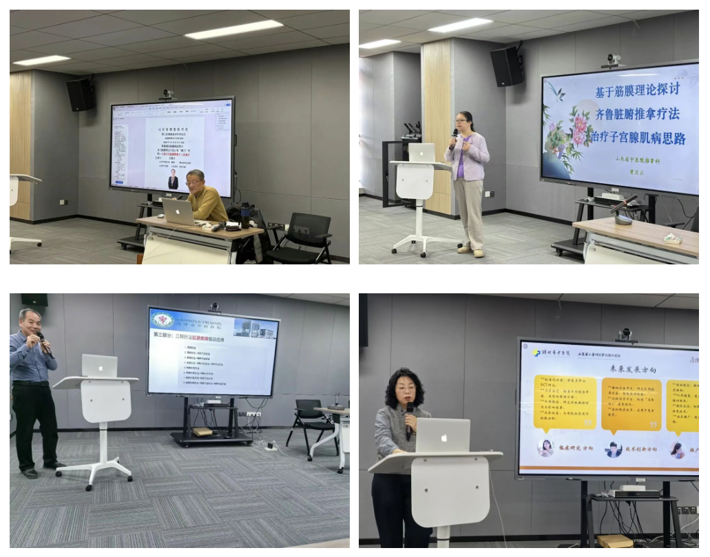 会议邀请推拿领域知名专家围绕脏腑病特色疗法进行专题讲座:全国名老中医药专家王国才教授讲授了《推拿调治脏腑病症简介及〈脏腑图点穴法〉和“阑门”考》;山东中医药大学附属医院曾庆云主任讲解了“基于筋膜理论探讨齐鲁脏腑推拿疗法治疗子宫腺肌病”;菏泽市中医医院高冠华教授讲述了“三特针法脏腑疾病临证应用”;潍坊市中医院李静教授讲述了“脏腑推拿治疗SCI后神经源性肠”;青岛市中医院田端亮教授分享了“发热的病因病机与诊疗思路”;山东第一医科大学附属颈肩腰腿痛医院彭昕主任讲解了“手法整复临床应用体会”;山东中医药大学附属医院伊长松、陈国明及孙刚毅副主任分别分享了“内脏筋膜松弛术在冠心病心动过速中的应用实践”及“超声引导下交感神经埋线在脏腑病中的应用”。