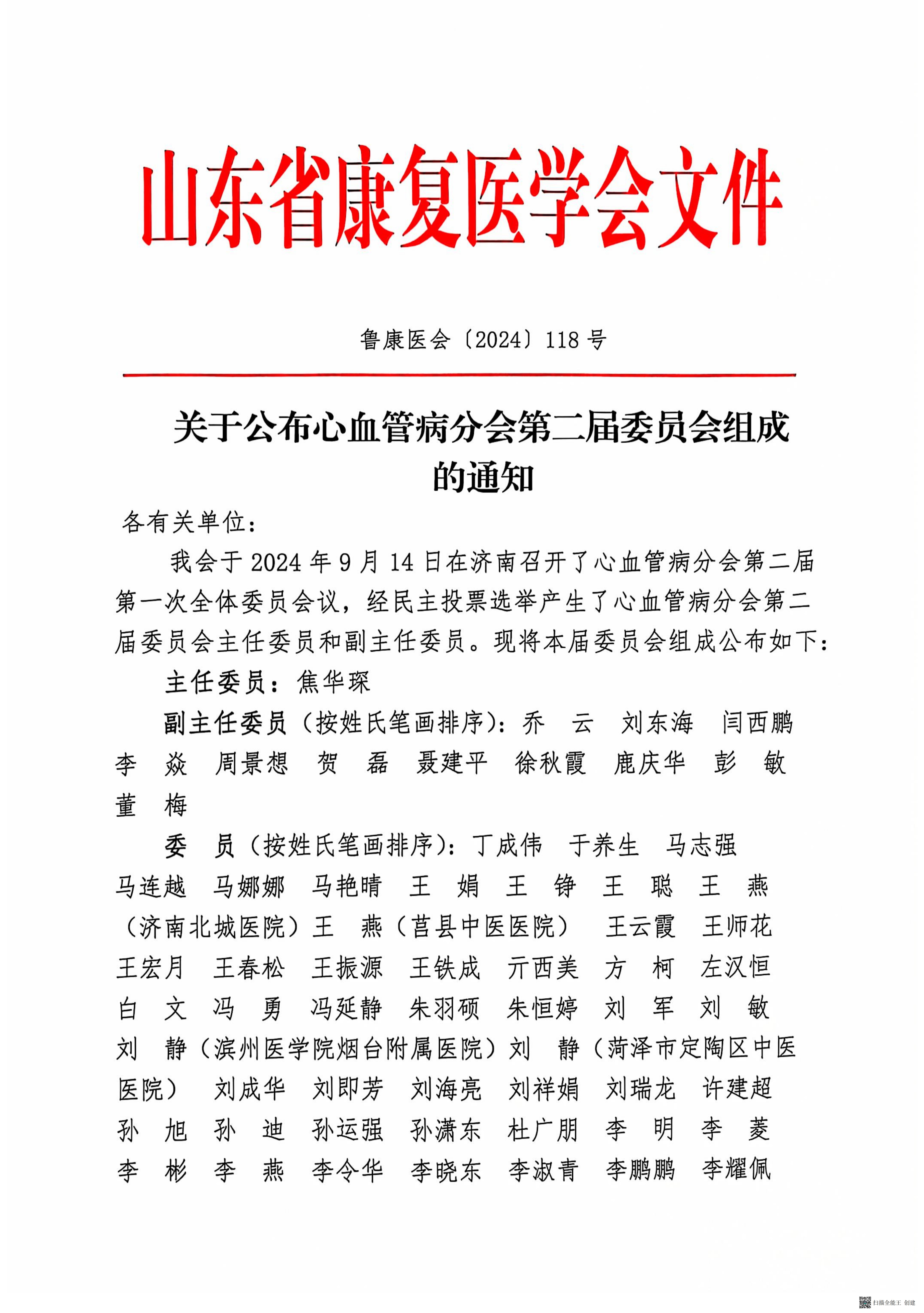 山东省康复医学会关于公布心血管病分会第二届委员会组成的通知.pdf