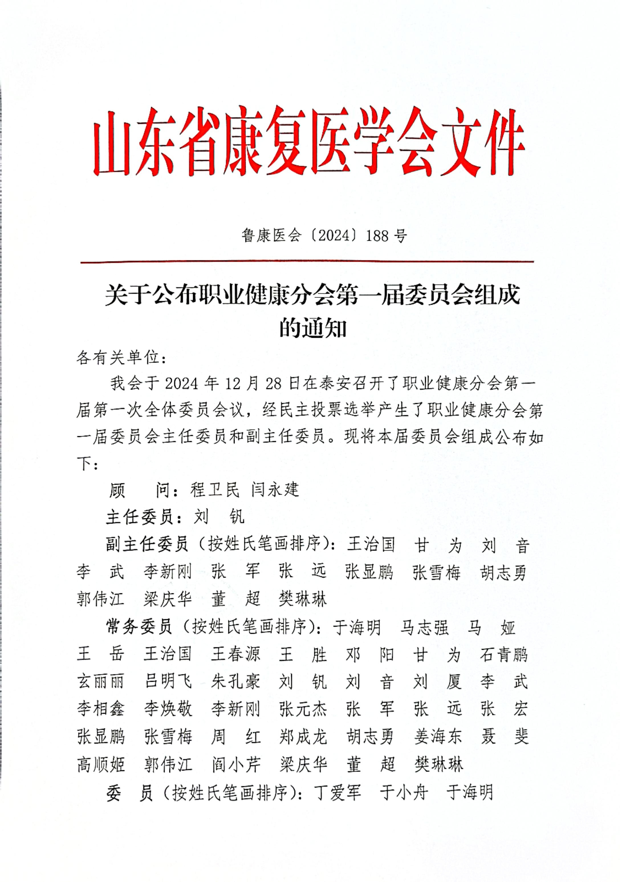 188-山东省康复医学会关于公布职业健康分会第一届委员会组成的通知(1).pdf