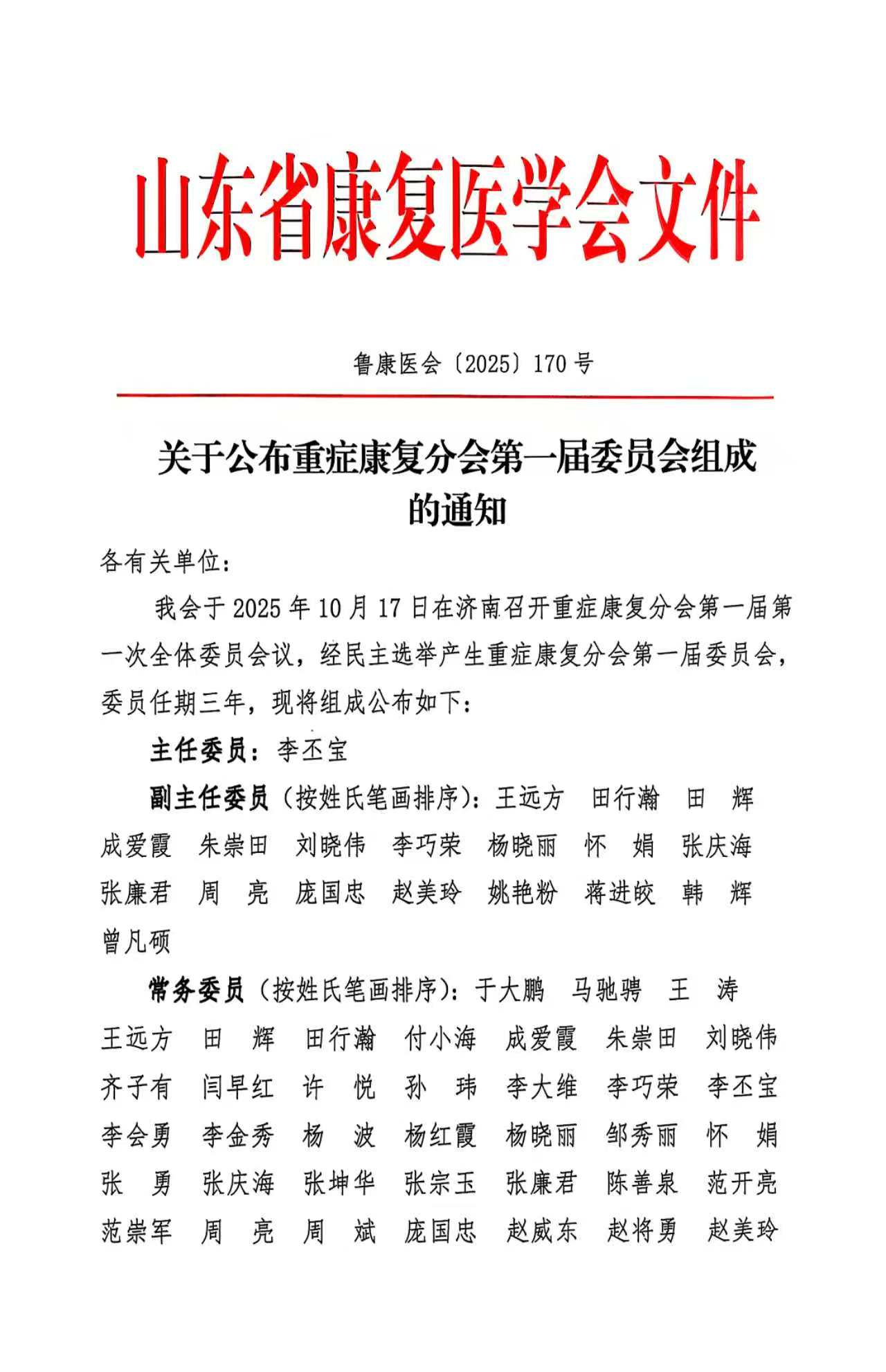 山东省康复医学会关于公布重症康复分会第一届委员会组成的通知.pdf